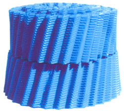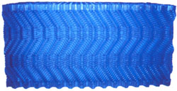 折波的板面加強(qiáng)了水流和空氣的擾流,其散熱面積增,系數(shù)較大,板面口圓錐形突出件,既起保護(hù)片距的作用,又能使片間落下的水流層濺散成細(xì)小水滴,使這種填料點(diǎn)滴性能提高冷卻效果,且配水均勻,表面積大,綜合性能較好。