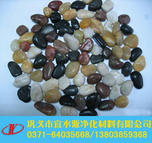 鵝卵石(礫石)濾料分天然型和機械加工型兩種,機械加工型是石英礦石破碎后經(jīng)球磨、水洗、篩選而成,外表光滑呈球狀,是各種濾料下面必需的承托層。